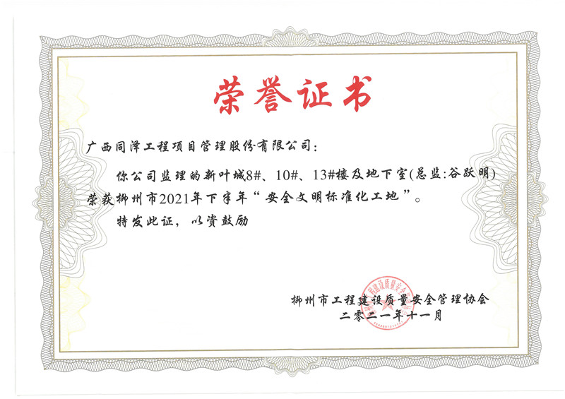 喜報頻傳 | 同澤股份多個項(xiàng)目榮獲“安全文明標(biāo)準(zhǔn)化工地”稱號